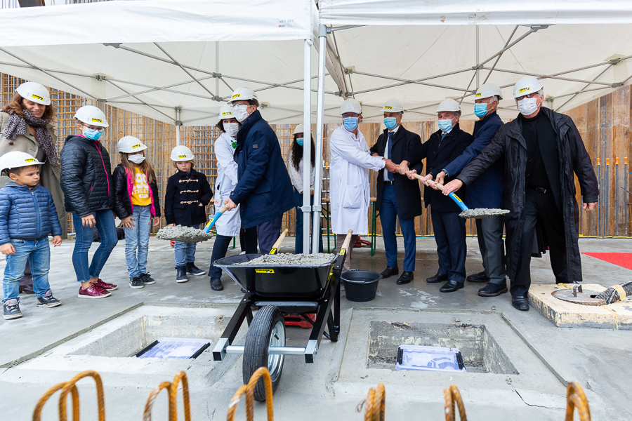 Equipés de casque et directement sur le chantier, ils ont rempli deux capsules temporelles d'objets choisis par des jeunes patients et patientes des HUG comme typiques de l’adolescence en ce début de 21ème siècle. Une fois scellées, les capsules ont été déposées dans les fondations du bâtiment avant d'être, comme le veut la tradition, recouvertes de béton. Un moment particulièrement apprécié par les enfants et les adolescents qui se sont activés avec pelles et truelles.
