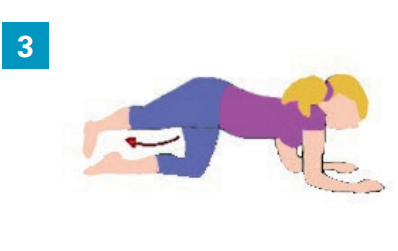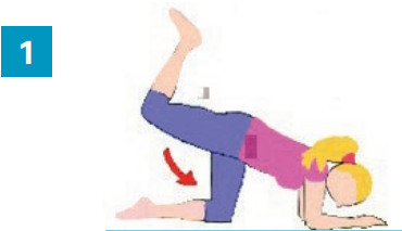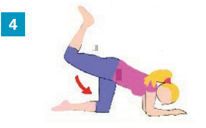 - Lever et baisser la jambe pliée, sans creuser le dos