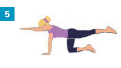- Etirer une jambe et le bras opposé le plus loin possible
