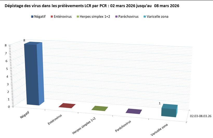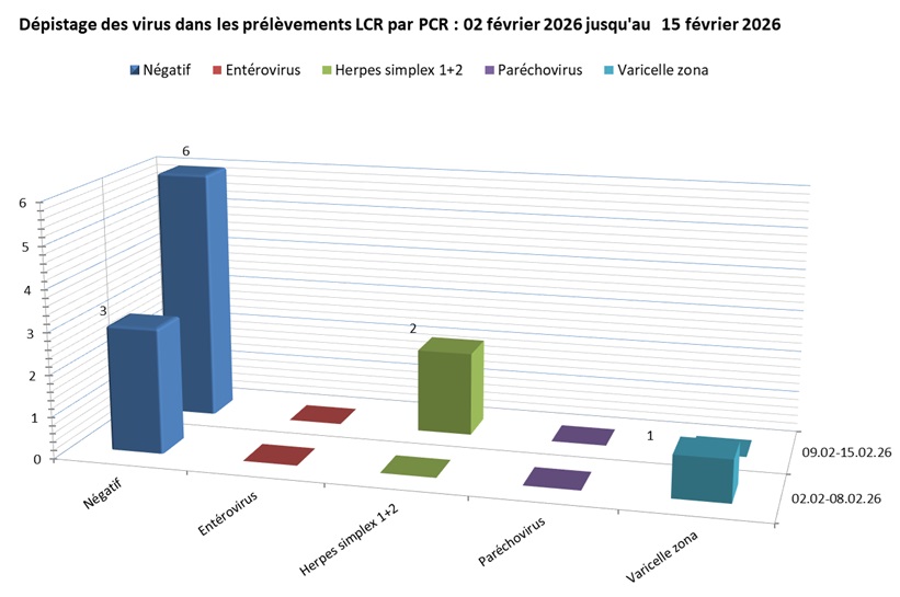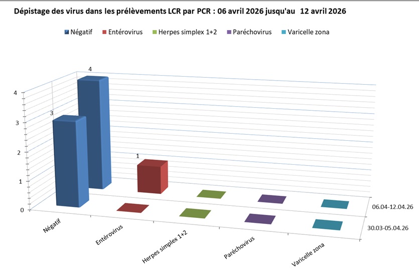 Screening des virus dans les liquides céphalo-rachidiens (LCR) aux HUG, résultats hebdomadaires du mois en cours