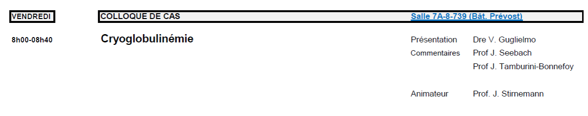 Les services hospitaliers et ambulatoires de médecine interne des hôpitaux universitaires de Lausanne (CHUV et Unisanté), de Genève (HUG) et Fribourg (HFR) organisent des journées de préparation à l’examen de spécialiste en Médecine Interne Générale. Cette formation a pour objectif une révision intensive de la matière évaluée et est en priorité destinée aux internes et chefs de cliniques inscrits à l’examen.