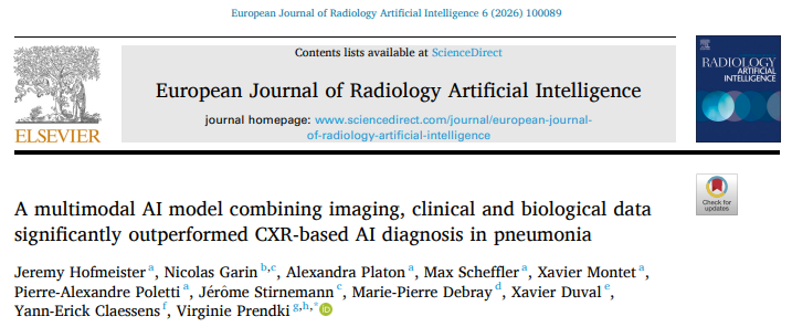...issu d’une collaboration entre plusieurs services autour de l’approche de l’intelligence artificielle combinant imagerie, biologie et clinique pour diagnostiquer la pneumonie.